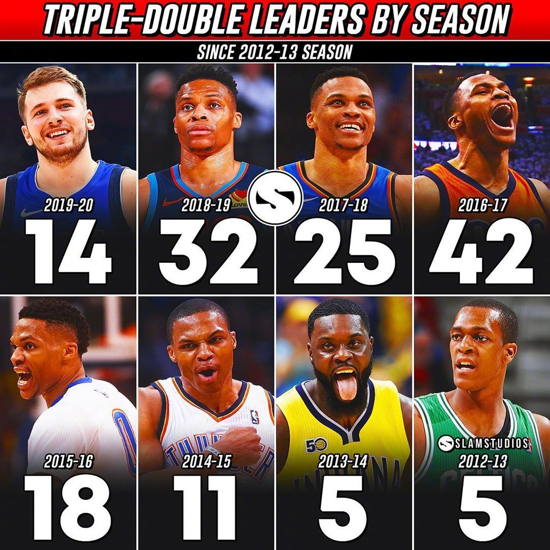 12-13赛季是隆多的5次;13-14赛季是芬森的5次14-15赛季威少拿到11次;15-16赛季拿到18次16-17赛季达到恐怖的42次;17-18赛季是25次18-19赛季升到32次;19-20赛季是东契奇14次也许您还喜欢:世界杯直播 亚洲杯直播 欧洲杯直播 足球直播