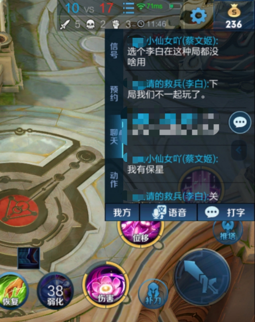 在一把星耀局排位赛中,见证了一对男女的分手。