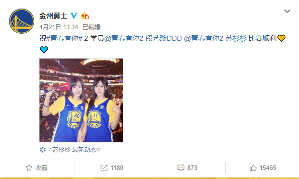 超新星小马达段艺璇参加《青你》现在正处在关键阶段,勇士队官博给拉票,你怎么看