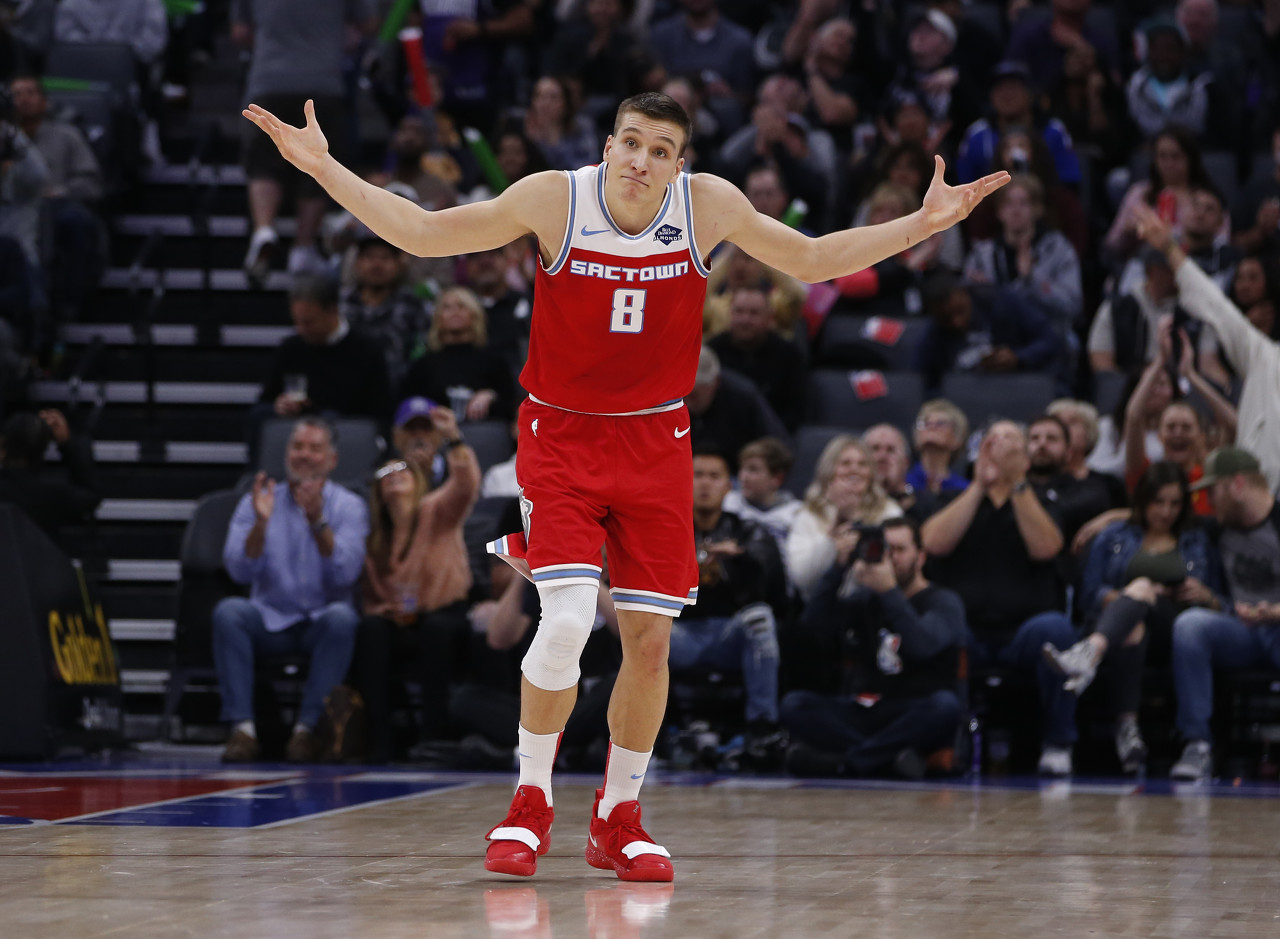 博格达诺维奇在2017年和国王签下一份3年2700万的合同,这份合同在明年夏天就要到期了。如果他与国王提前续约,他最多可以签下一份4年5100万美元的合同,这份合同显然无法匹配他的身价。博格达将在今年夏天成为受限制自由球员,再签下一份更大的合同。据NBA记者Sean Deveney报道,联盟某支球队的高管预测,这位塞尔维亚的射手将拿到一份4年8000万美元的合同。紧张的自由球员市场和受限制自由球员的身份也会对他的市场有所损害。据之前的报道,国王今夏进行交易的主要目的是创造薪资空间与博格达完成续约。赛季至今,博格达诺维奇场均登场28.1分钟,可以得到14.5分3篮板3.1助攻1.1抢断,三分命中率37.4%。