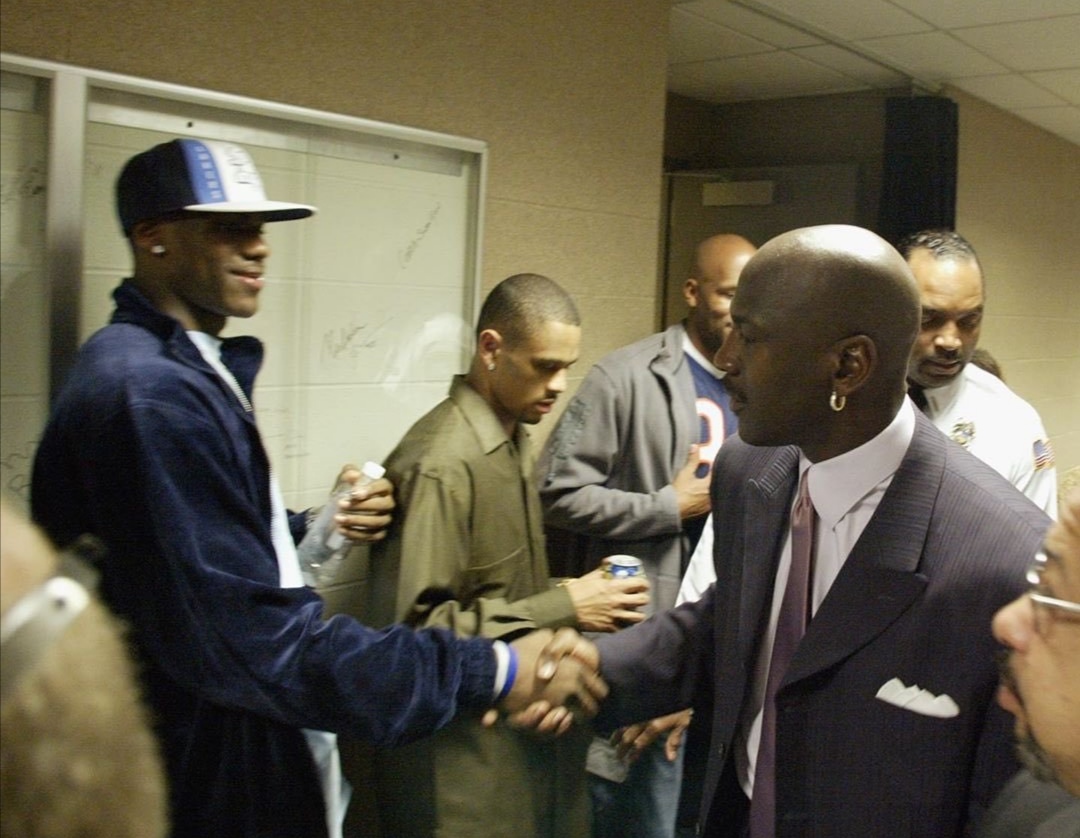 来一波幼詹和老帮主的握手照~