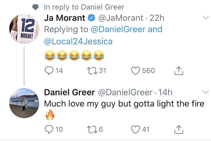 比赛结束后,莫兰特在采访中说他有今天这场的表现套感谢一名推特上的球迷。