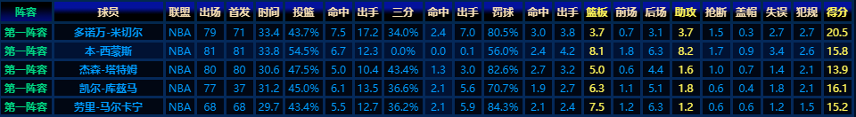 2018-2019赛季最佳第一阵容? ? ? ? ? ? ? ? ? ? ?最佳新秀:东契奇