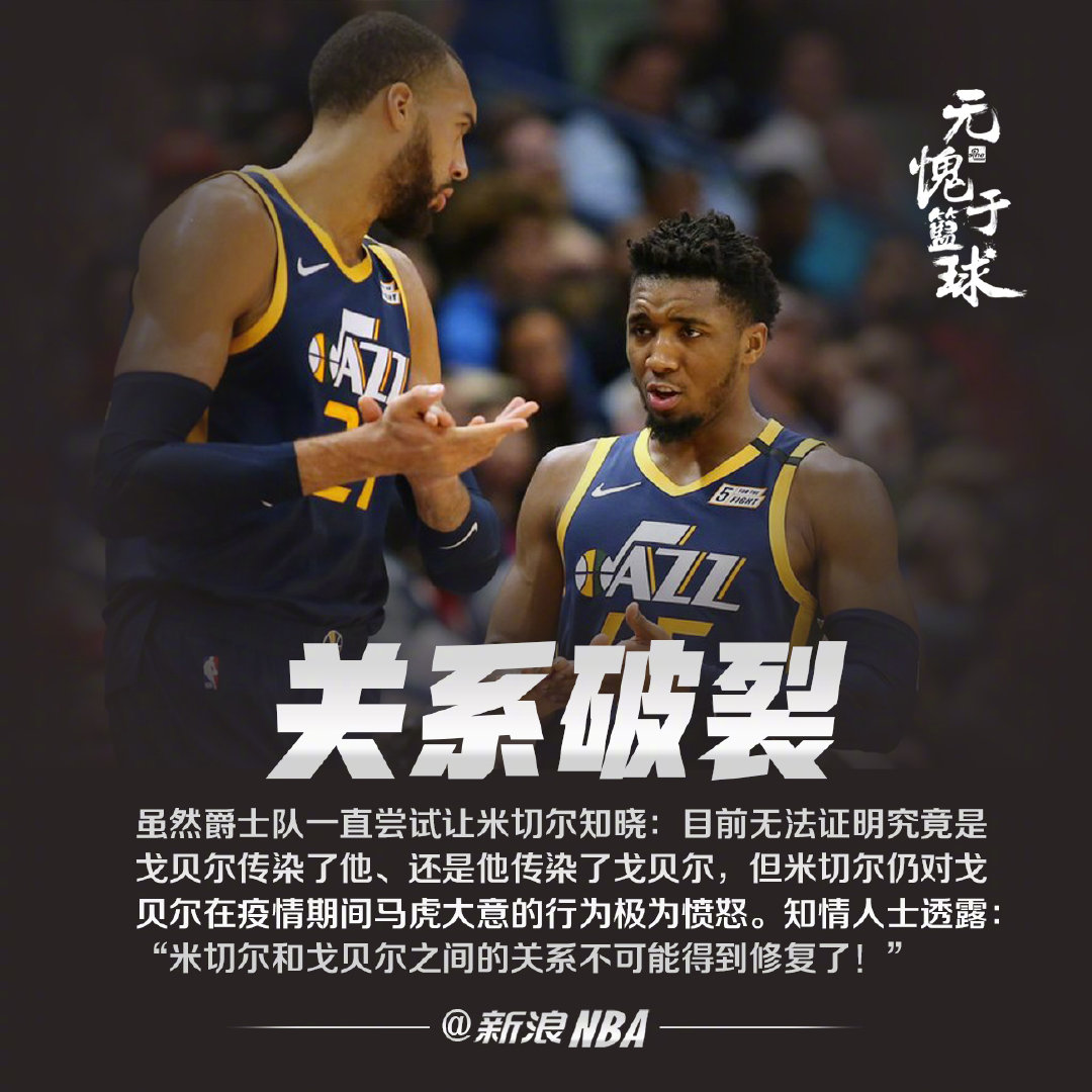爆米切尔戈贝尔关系破裂!爵士两大球星之间,因感染冠状病毒而产生的裂痕似乎难以修复。米切尔仍对戈贝尔在疫情期间马虎大意的行为极为愤怒,一位知情人士透露说:“米切尔和戈贝尔之间的关系不可能得到修复了!” ???[衰][衰][衰]也许您还喜欢:世界杯直播 亚洲杯直播 欧洲杯直播 足球直播