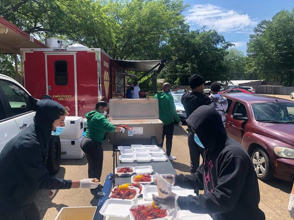 罗伯特亲自上阵数小时为社区的人们分发了免费食物。