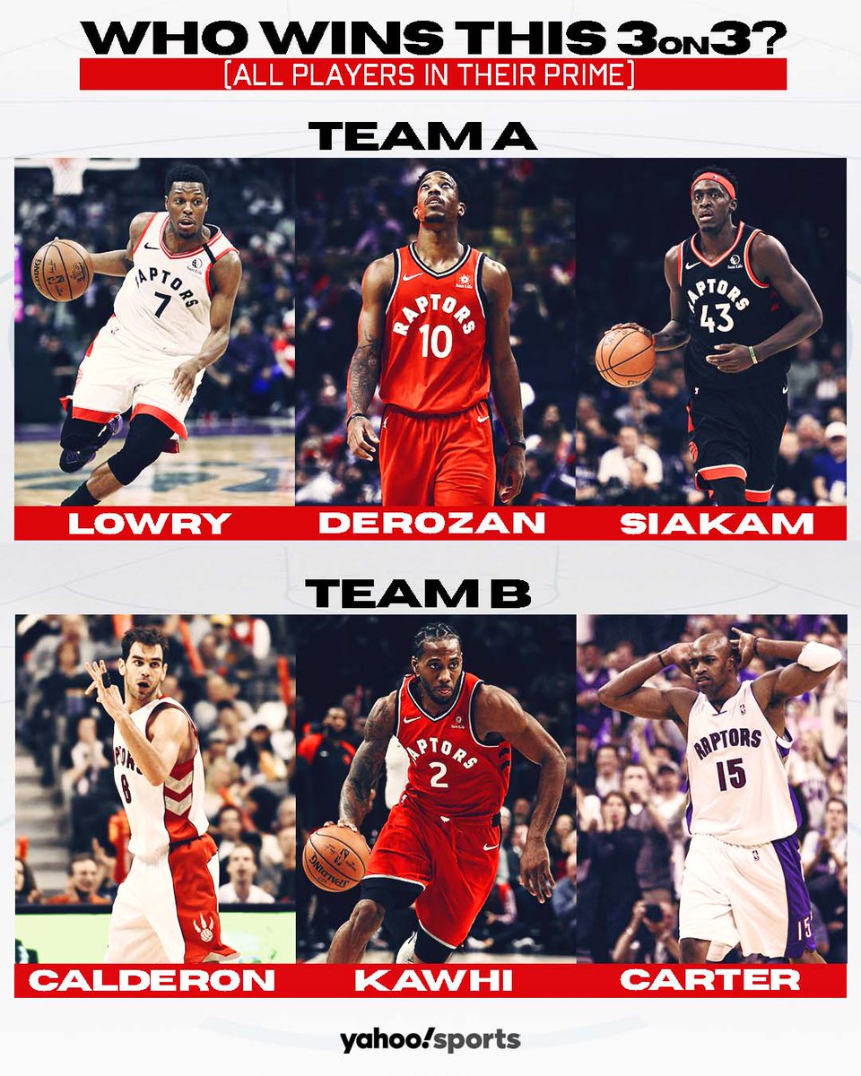 Yahoo Sports Canada晒出两组猛龙阵容来PK,提问3V3的话,哪组赢?