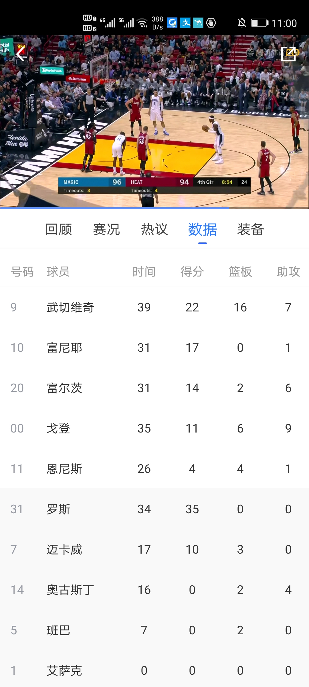 武切维奇本场拿下22分16板7助攻的亮眼数据,而替补席上的特伦斯罗斯,则以三分球10中8,全场18中12的投篮效率拿下全场最高的35分。