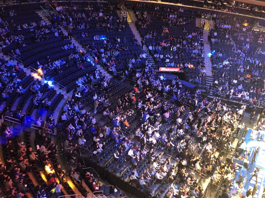 今天尼克斯对阵爵士的上座率罕见的低。这种大片大片的空座位甚至令多年采访纽约尼克斯的老媒体人都惊讶。往常,尼克斯打任何一个球队都能达到9成以上的上座率。