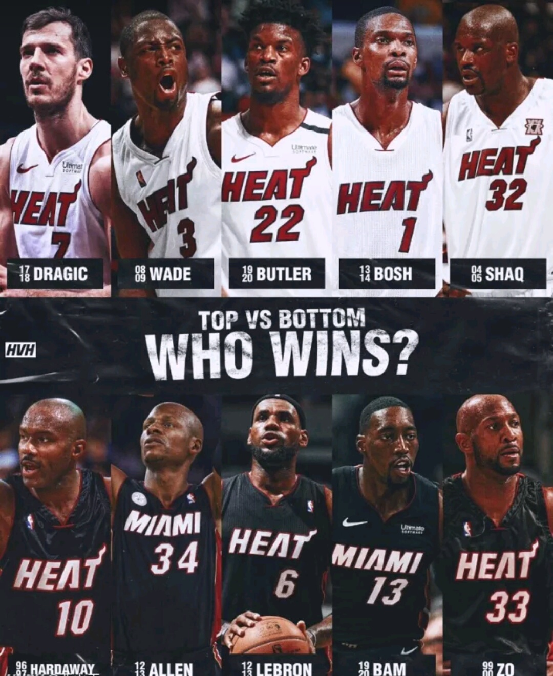 Top:德拉季奇、韦德、巴特勒、波什、奥尼尔Bottom:哈达威、雷阿伦、詹姆斯、阿德巴约、莫宁这两支热火队打7场比赛,谁会更胜一筹?也许您还喜欢:世界杯直播 亚洲杯直播 欧洲杯直播 足球直播