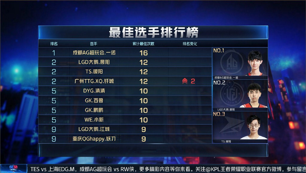 (截止常规赛第九周最佳选手排行榜)