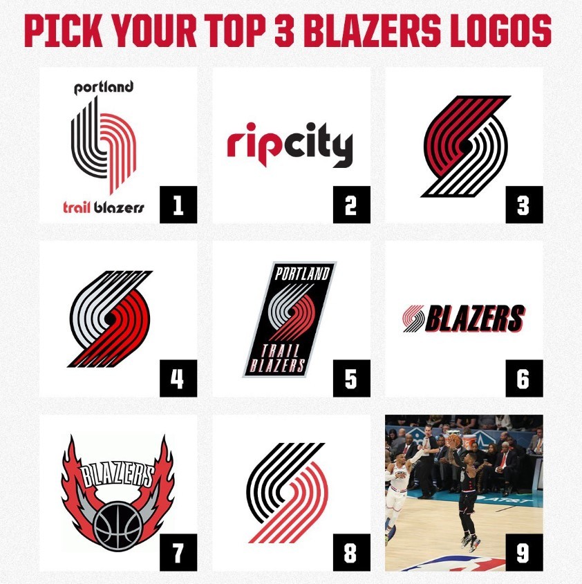 开拓者官方更新推特“我们要提出一个很难的问题:在九个Logo中选出你最喜欢的三个。”第九个Logo是利拉德从Logo处投篮这倍有面!