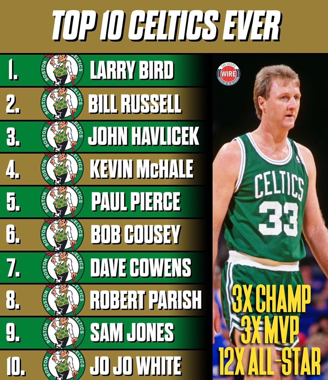 凯尔特人队史前十球员排名 大鸟和指环王,谁该第一?