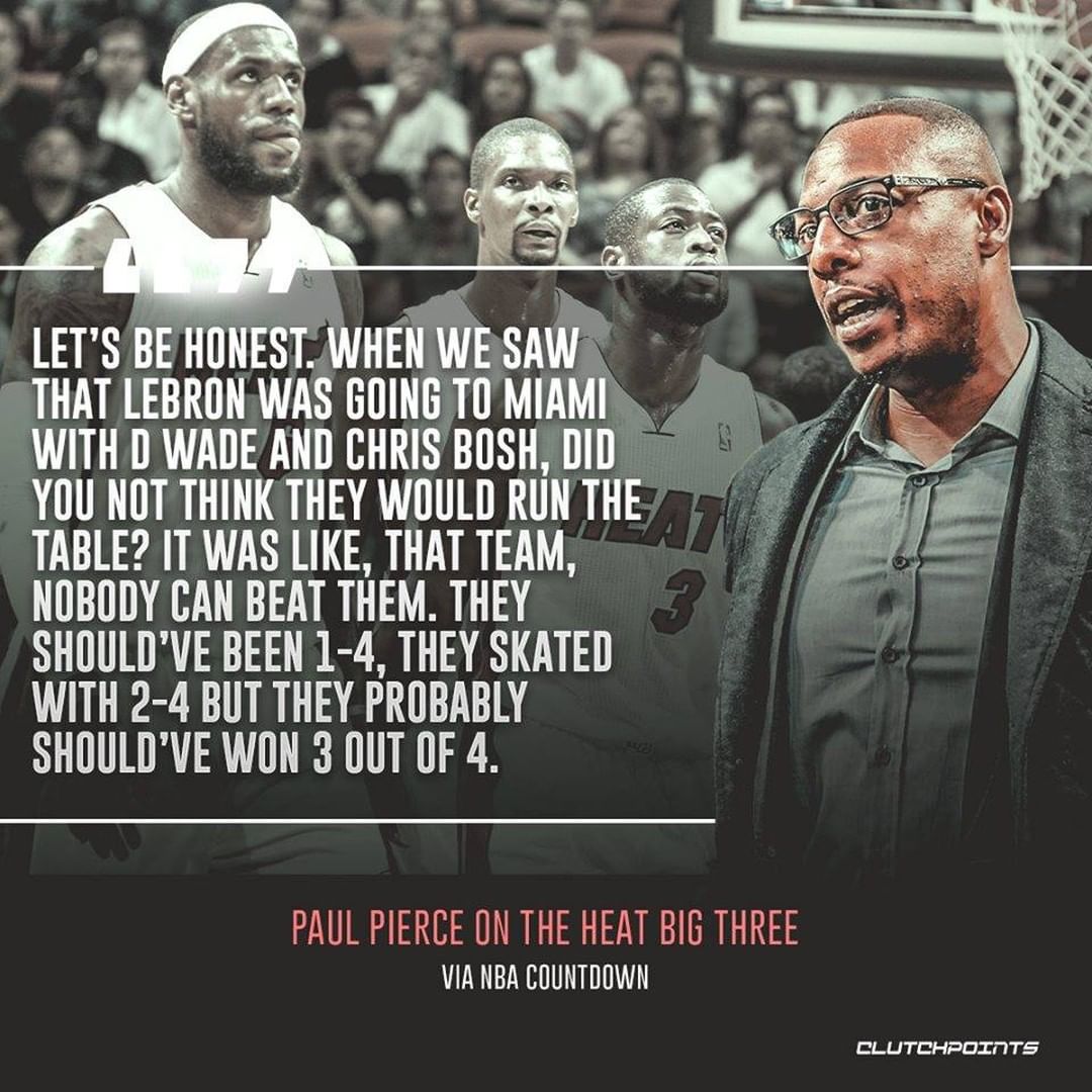 皮尔斯认为热火三巨头没有充分发挥出他们应有的水平,4次总决赛两次夺冠算表现不佳。