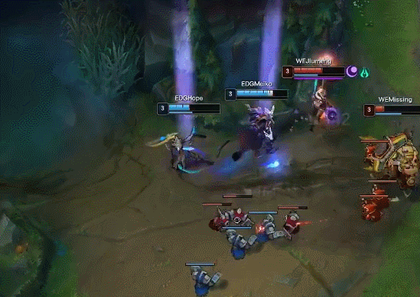 hope和meiko下路二人组完美配合,前期双杀we下路,上路鳄鱼传送依旧倒在hope复仇之矛下,为edg拿到夏季赛开幕战首胜!hope,edg的希望!