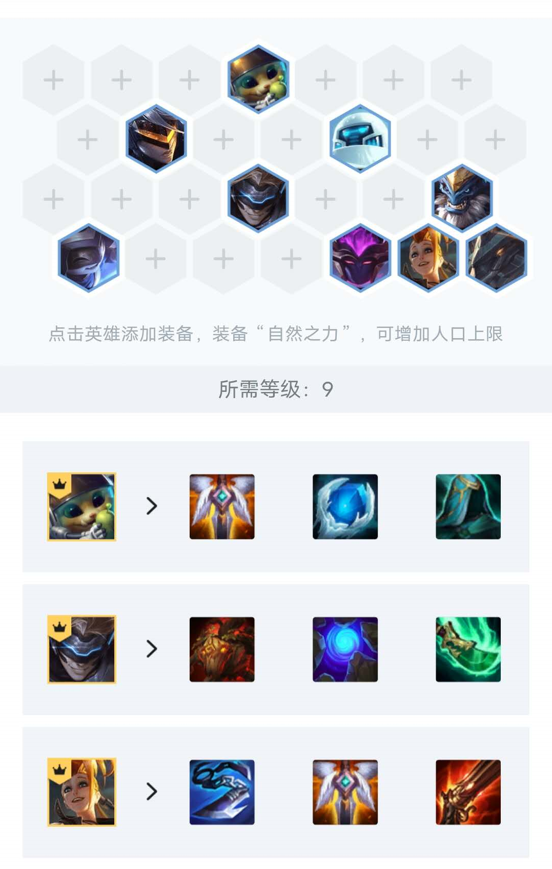 装备分配:这个阵容就得益于巨人杀手的增强,所以金克丝必备巨人杀手,另外复活甲算是最好的防装,伏击手套也可以,水银不太推荐。第三件装备可以火炮或者飓风。纳尔给肉装最好有一个复活甲。