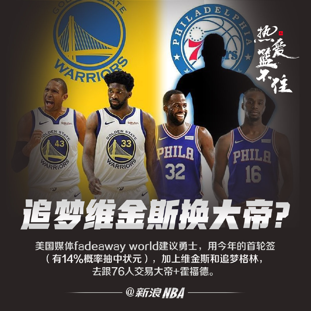 美国媒体建议勇士,用首轮签(大概率状元)+维金斯+追梦,去换大帝+霍福德。 ??不知道人家76人愿不