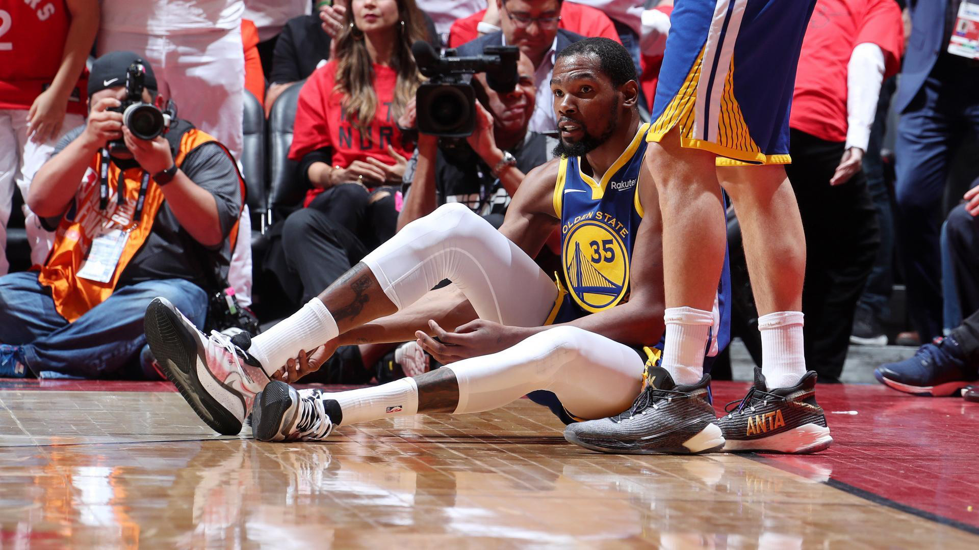 2019年6月11日,在勇士对阵猛龙的总决赛第五场比赛中,杜兰特迎来了复出,他5中3拿到了宝贵的11分但随后悲壮伤退离场,跟腱断裂赛季报销。那天库里怒取31分,汤神砍下26分,帮助勇士106-105一分险胜对手,比分艰难的扳成了2-3,成功续命将比赛拖回金州!这场比赛是多少勇蜜杜蜜心中的痛啊...