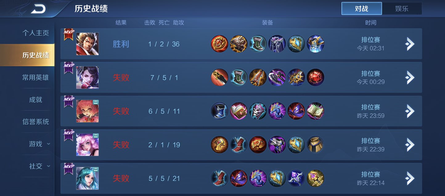But不信命…不信命啊[大哭]于是爬起来~打开了欢乐的timi,看了看战绩,分析了一波,可能是女英雄克我,那就一手我飞哥上线,果然哈哈哈哈赢了[调皮]哎呀我终于可以得意的睡觉了,作为一个萌妹子,真的是跟男英雄杠上了,难道我就是传说中的女中豪杰????[疑问]