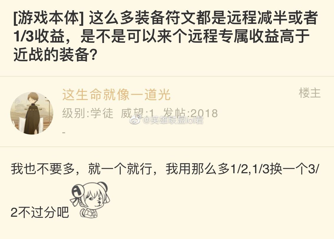 这么多装备符文都是远程减半收益,是不是可以来个远程专属收益高于近战的装备?也许您还喜欢:世界杯直播 亚洲杯直播 欧洲杯直播 足球直播