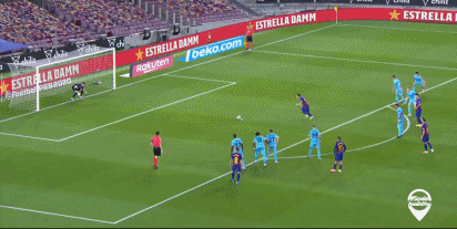 梅西对阵莱加内斯的比赛中,连过数人造点,随后亲自主罚命中,打入个人生涯第699粒进球!