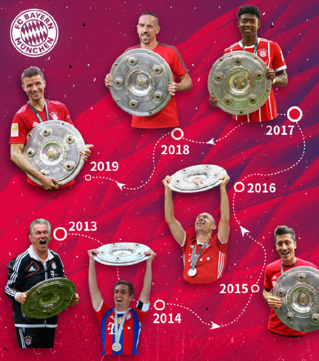 北京时间6月17日,德甲巨人拜仁慕尼黑赢下云达不莱梅,提前2轮夺得德甲冠军,完成联赛8连冠,也追平意甲霸主尤文图斯的联赛8连冠的纪录,如此统治力令人惊讶不已。同时拜仁也成为第三支联赛冠军30+的俱乐部,前两支是尤文(35次)以及皇马(33次)。