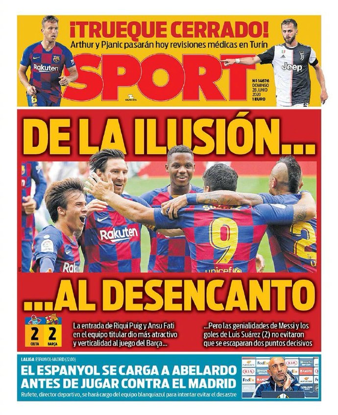 本场比赛阿图尔替补上场9分钟,仅有5次传球但全部到位,踢完比赛火速前往都灵体检,皮亚尼奇不会来巴萨体检,巴萨将派队医去都灵为他体检。
