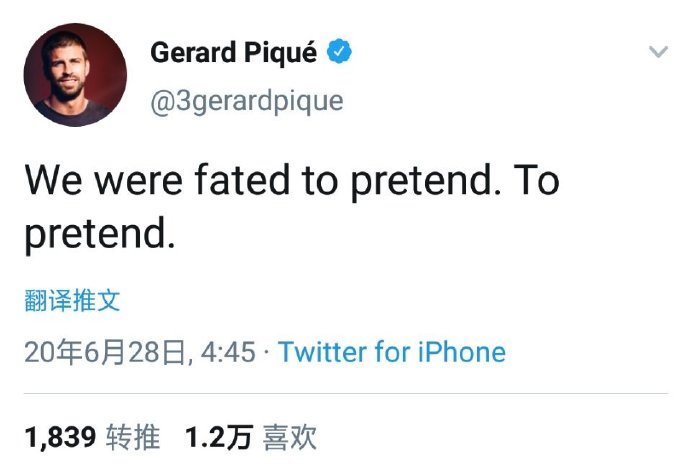 皮克推特更新:我们只有装作满不在乎,满不在乎。(个人认为一方面对这场比赛结果不满,另一方面有对高层的不满)