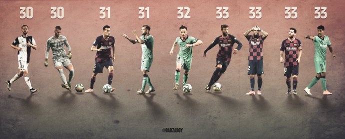 皮亚尼奇加盟后,巴萨一线队将有9名30岁及以上的球员,几乎都是轮换主力或主力。