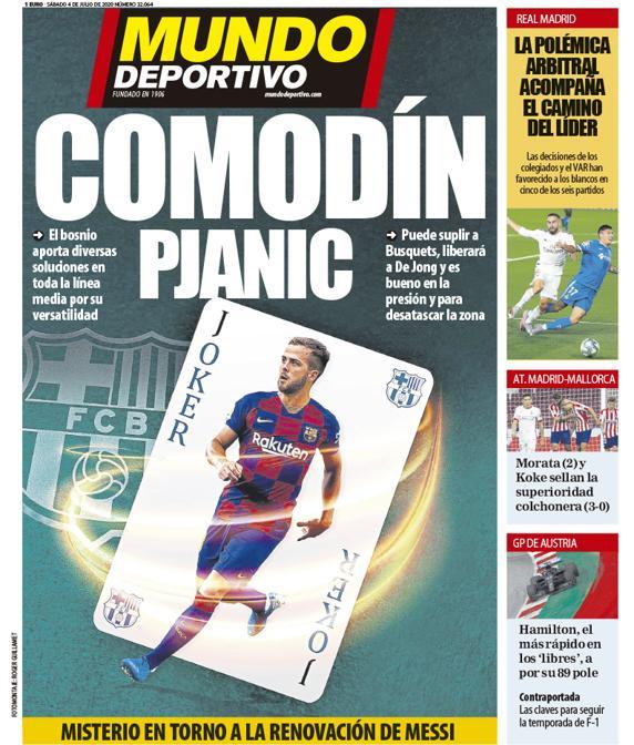 《世体》:小丑牌皮亚尼奇,皮亚尼奇是一个可以胜任中场多个位置,可以搭配任何球员。