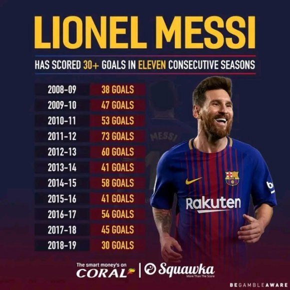 以前巴萨是最后一或两脚传给梅西,现在是中圈开始想办法传给梅西。梅西过去十年每年进球数和参与进球数占巴萨总进球数比例: