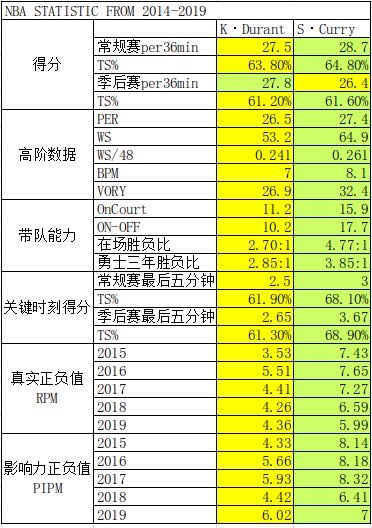 这么一看库里好像确实很厉害的,杜兰特在勇士时期和在雷霆时期差别几乎是两个不同的人。雷霆时期杜兰特季后赛的三项命中率分别是45%+33%+85%,勇士时期杜兰特季后赛的三项命中率分别是52%+40%+90%,这几乎是明显质的飞跃。精确到每个赛季的命中率,10赛季35%,11赛季44.9%,12赛季51.7%,这也是杜兰特雷霆时期唯一超过50%赛季,13赛季45.5%...