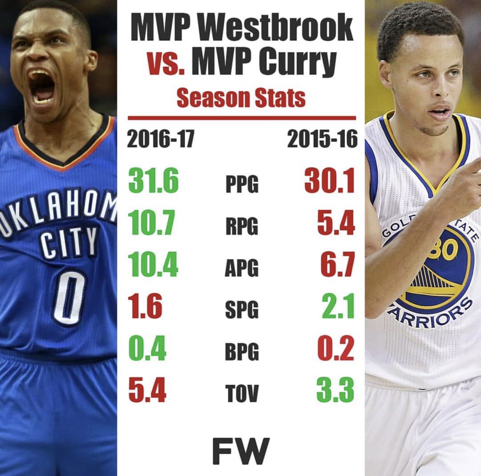 【MVP含金量对比!2016-17赛季威少vs2015-16赛季库里,威少完胜】场均得分:威少31.6——库里30.1篮板球:威少10.7——库里5.4助攻数:威少10.4——库里6.7抢断:威少1.6——库里2.1盖帽:威少0.4——库里0.2失误数:威少5.4——库里3.3也许您还喜欢:世界杯直播 亚洲杯直播 欧洲杯直播 足球直播