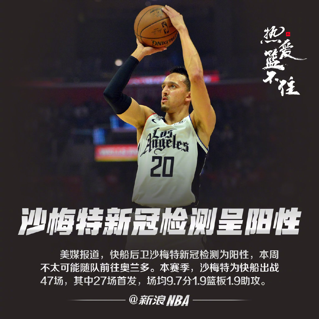 沙梅特新冠检测呈阳性,快船夺冠难度加大