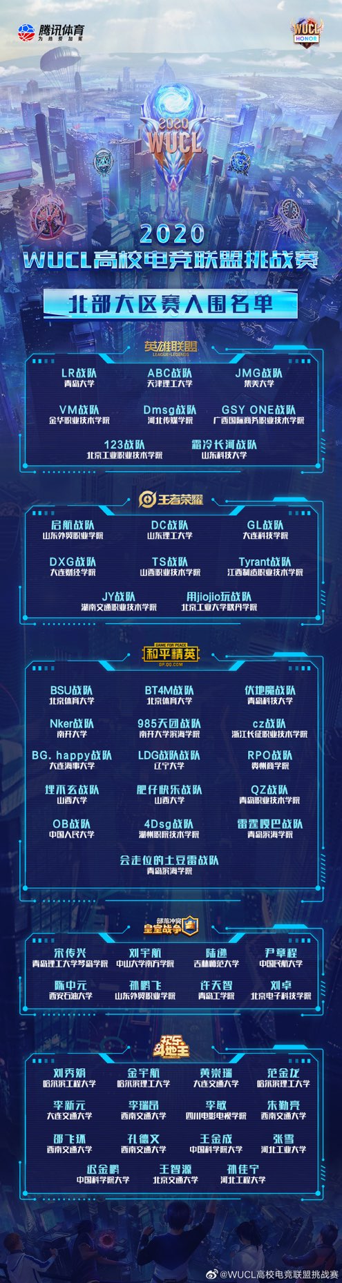 #WUCL# 高校电竞联盟挑战赛由@腾讯体育 主办,明日北部大区赛将在济南舜耕国际会展中心开战!青春就要赛一场,校园电竞燃情一夏~预祝各位入围选手取得理想成绩!最终哪些选手能够和北部赛区发起人@R1SE-刘也 一起现身全国总决赛呢?让我们我们拭目以待~各位加油!