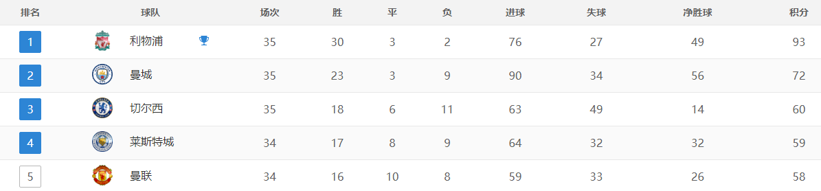 英超第35轮,切尔西客场0-3负于谢菲联,在本轮先赛的情况下,以60分排在第三,领先莱斯特城1分,领先曼联2分。