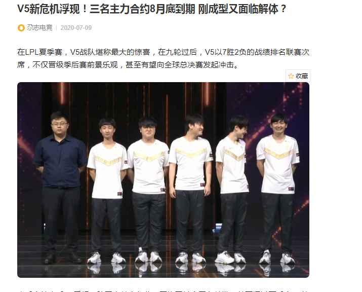 V5新危机浮现!三名主力合约8月底到期 刚成型又面临解体?