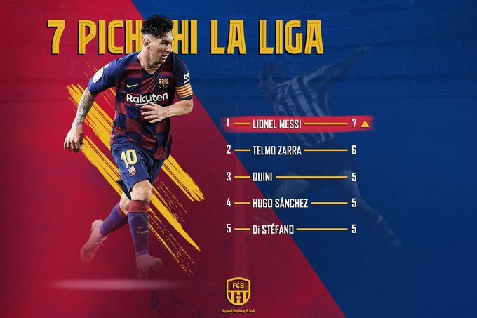 梅西西甲打进25球,夺得西甲金靴,这是梅西第7次获得皮齐齐奖,超越了6次的萨拉独占西甲历史第1,与德甲盖德·穆勒的7次德甲金靴并列五大联赛第1。
