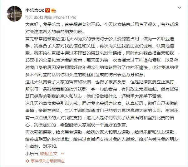 乐言始终不知道为什么他会被骂(不是那些没事骂人取乐的黑粉)。乐言始终不知道自己到底错在哪了,并且认为自己从来没有错,一次次的行为也只是被舆论压迫下的行为……
