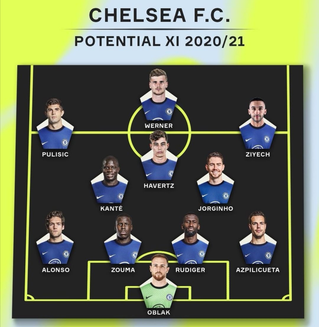 前锋:普利西奇,维尔纳,齐耶赫中场:坎特,哈弗茨,若日尼奥后卫:阿隆索,祖玛,吕迪格,阿斯皮利奎塔门将:奥布拉克也许您还喜欢:世界杯直播 亚洲杯直播 欧洲杯直播 足球直播