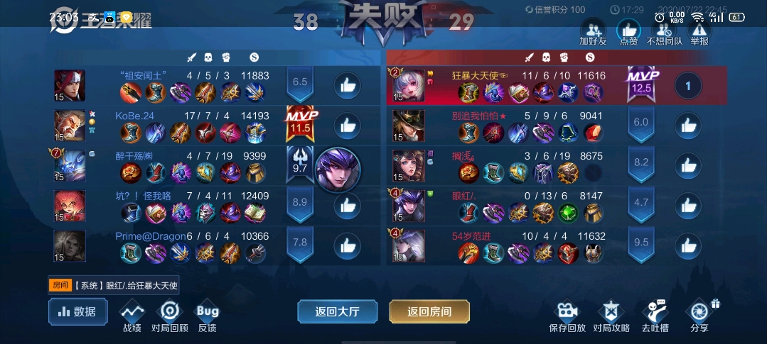 前期我们顺风,后面被这个坑比马超带的一比吊糟,我真是太难了,艹,结束了还给我点个赞?点赞也要举报你!扣四分。社区的小伙伴们给我点个赞安慰一下吧,真的好气啊[大哭][大哭][大哭][大哭][大哭]