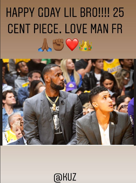 老詹ins发了一串照片,为库兹马庆生:小兄弟,生日快乐!永远爱你!