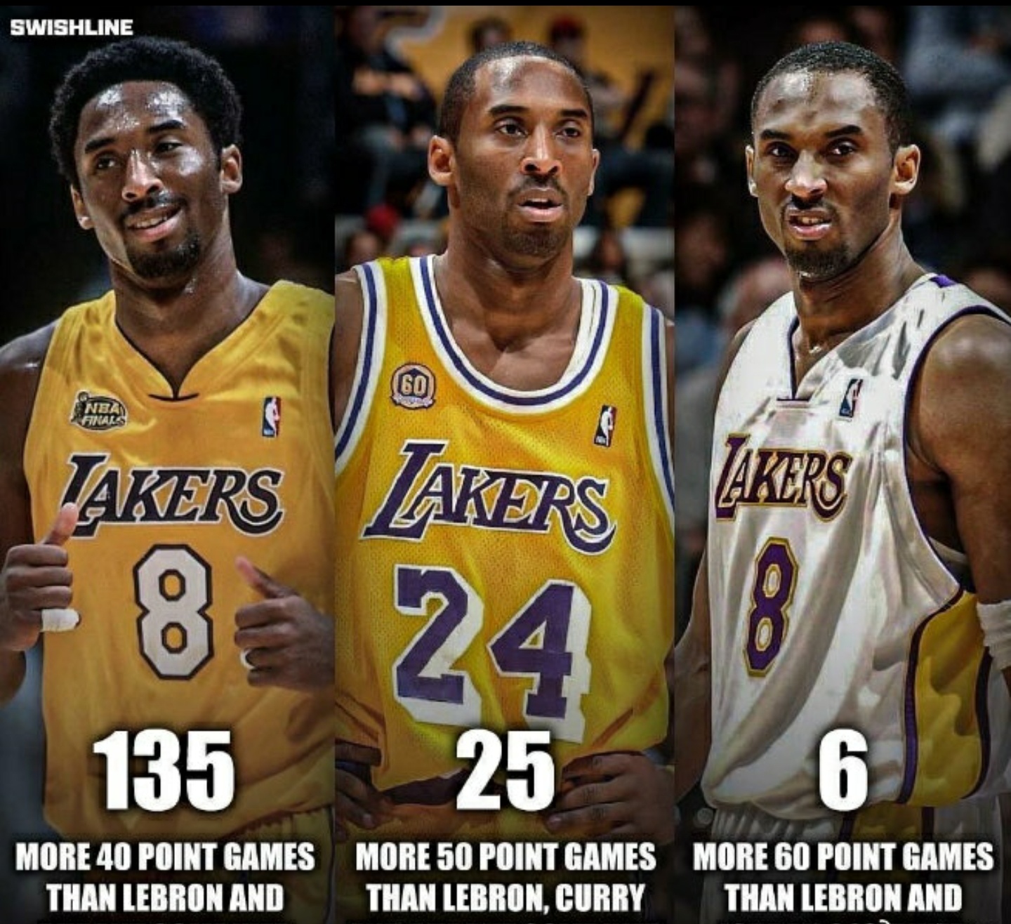 不知不觉,湖人名宿科比和二女儿Gigi已经离开我们整整半年了,感觉还是那么不现实。各大媒体今天在社交媒体上用各种方式缅怀和致敬科比。据统计,科比生涯(含常规赛和季后赛)有135次单场得分40+,比詹姆斯和杜兰特加起来还多;科比生涯有25次单场得分50+,比詹姆斯、库里以及杜兰特加起来还多;科比生涯有6次单场得分60+,...也许您还喜欢:世界杯直播 亚洲杯直播 欧洲杯直播 足球直播