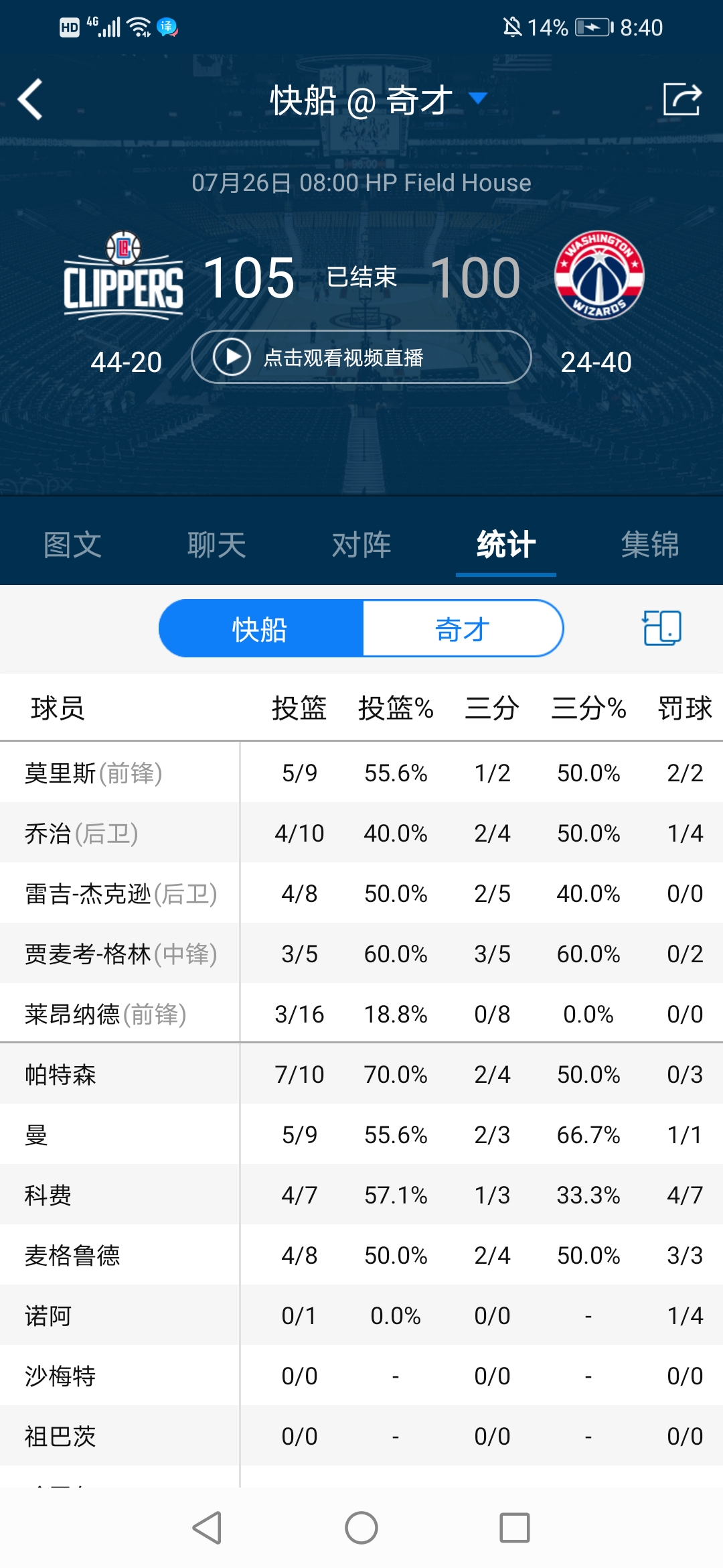这场下来全队首发低迷,而湖人却貌似找到了获胜的方法,让人有点担心在只有诺阿一个纯正中锋没有轮转的情况下,快船如何才能调整确保战胜湖人,重出西部夺得总冠军?虽然只是热身赛,但士气还是很重要的,快船105-100奇才,说实话这场比赛让我挺意外的,赢的很艰难,小卡和泡椒的状态都不太好,不过好在赢下来了,诺阿或许是...