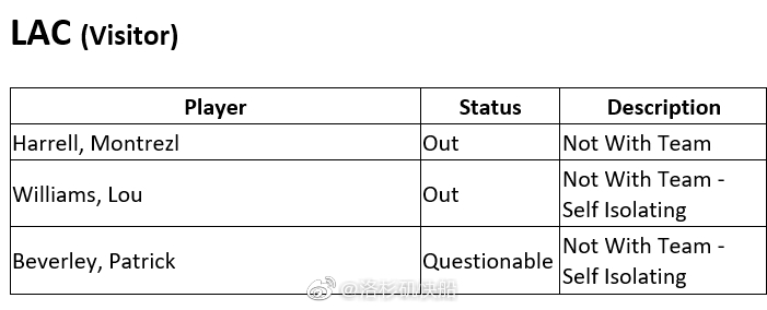 黑贝、路威和哈雷尔都未随队,其中黑贝与路威正在自我隔当中。缺席三名大将,对快船阵容的影响不言而喻。首发预计:雷吉+泡椒+小卡+小莫+祖巴茨。快船素来仪仗第二阵容来迅速拉开比分,那对阵湖人的比赛中,谁来带动第二阵容呢?