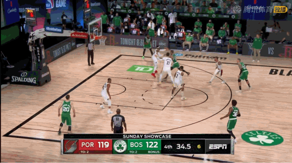凯尔特人险胜开拓者,取得复赛后首胜!