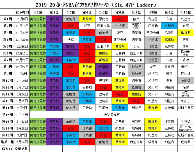 今天,NBA官方公布了本赛季最后一期MVP榜排名,阿德托昆博继续排名第一。