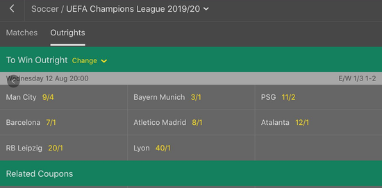 欧冠最新夺冠赔率 你看好谁最后捧杯?