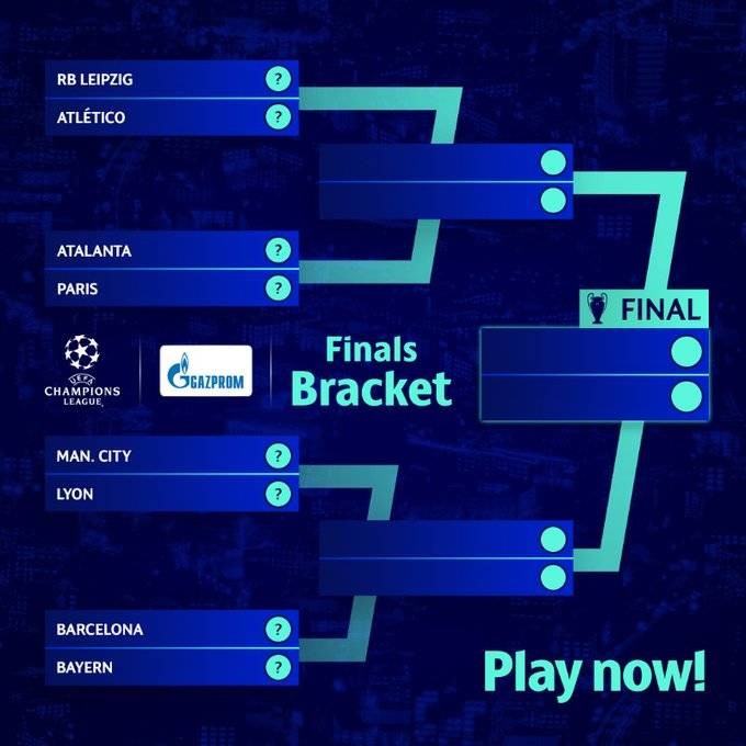 欧冠8强对阵已出炉,各队夺冠赔率也已更新。曼城1赔3.25最被看好。