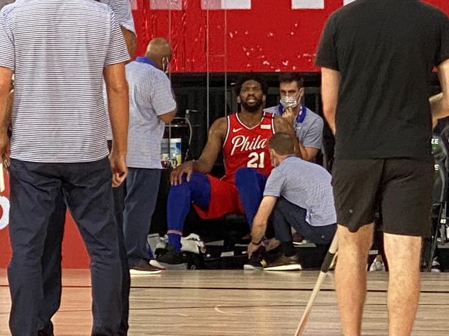 复赛的76人真是多灾多难,西蒙斯预计接受手术赛季报销,大帝又踩到篮架上扭伤了脚踝。?