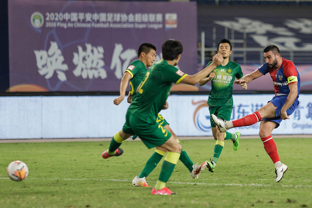 中超北京中赫国安迎来升班马青岛黄海的挑战。上半场巴坎布为国安先拔头筹,
